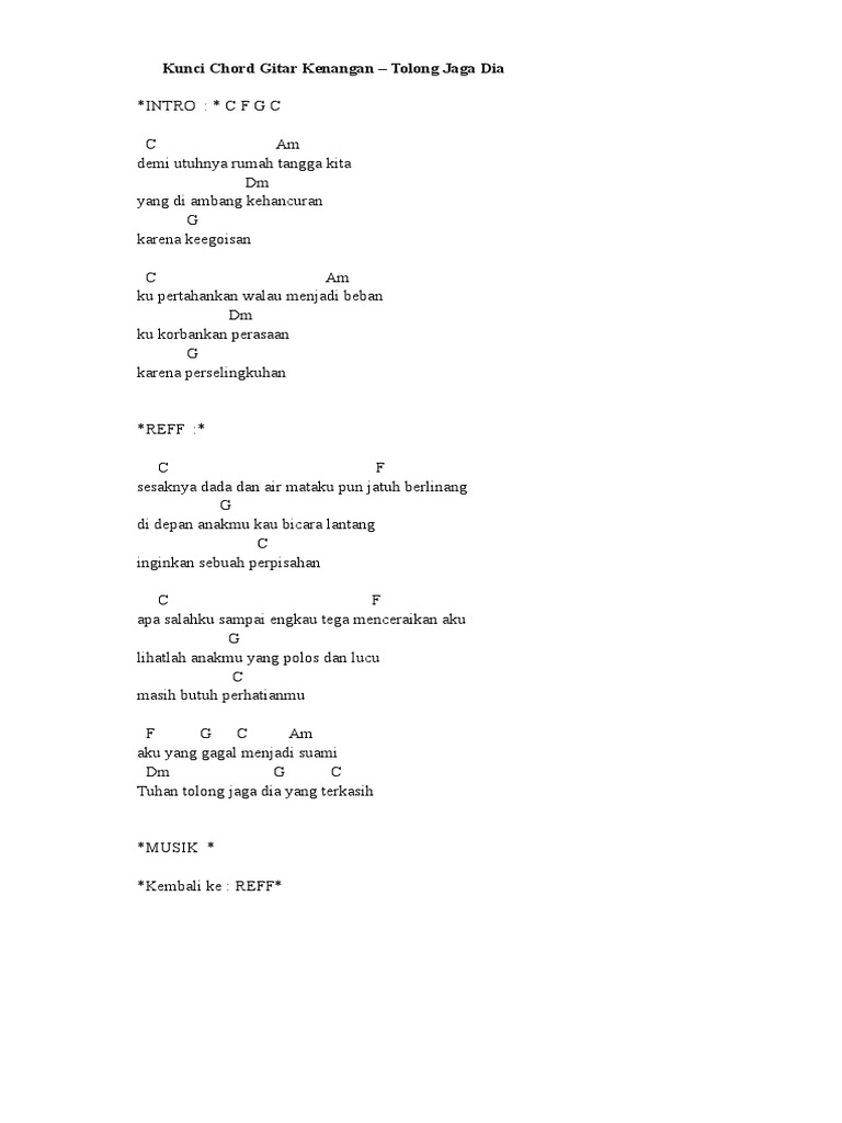 Chord Tuhan Tolong Aku Tolong Jaga Dia Doaku Untukmu Sayang Wali Sonora Id